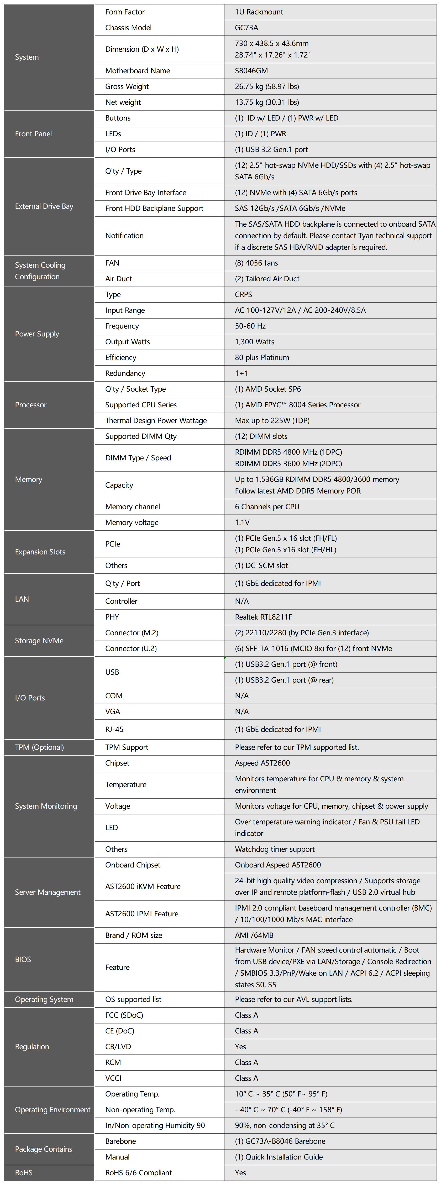 System form factor1U Rackmount